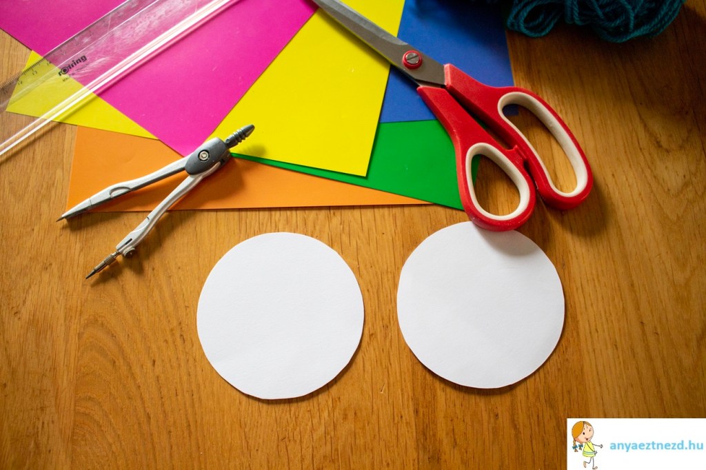 A fehér kartonpapírra rajzoljunk fel egy 8 cm átmérőjű kört, majd vágjuk ki.