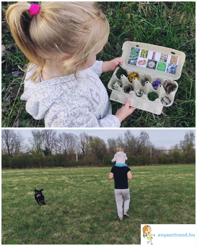 Nem tűnik soknak, de ennyi éppen elég is volt, hogy jobb lábbal keljek pénteken és előkészítsem a Nagy „kincskeresés a természetben” játékát szombatra. A babával és a kutyával hármasban kivonultunk az egyik közeli erdő szélére és számot vetettem mindenféle ott található „kincsről”, hogy a lányom a hétvégén meg tudjon találni mindent, amit listáztam neki.