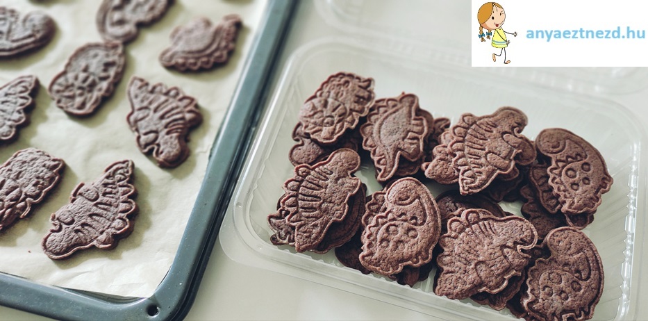 A szabadtéri program helyett gyúrtam egy nagy adag tésztát a kedvenc csokis kekszünkhöz és a Nagy közreműködésével végre kipróbáltuk az új dínós sütikiszúróinkat. Mire észrevettük magunkat, már olyan mennyiségű brontoszauruszt, triceratopszot és sztegoszauruszt gyártottunk, hogy egy kisebb település élelmezési gondjait megoldaná, így végül elhatároztuk, hogy hétfőn beviszünk az oviba is belőle egy nagy dobozzal.