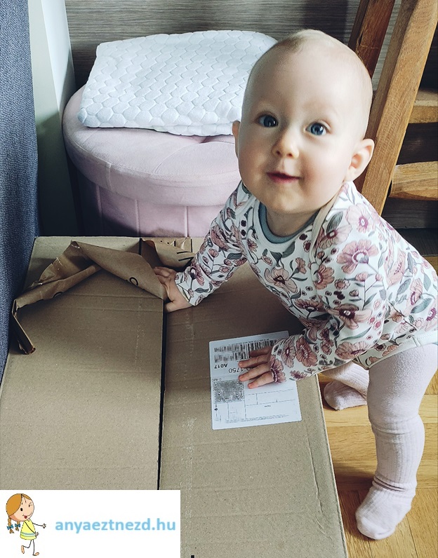A mozgása viszont rohamosan fejlődik, oldalazik a bútorok mellett, már egészen sokáig tud önállóan állni, sőt, már arra is képes, hogy kapaszkodás nélkül leguggol, majd feláll. Villámgyorsan járja körbe a lakást, szerda délelőtt elég volt pár másodpercre elfordulnom és még a frissen érkezett csomagomat is kibontotta.