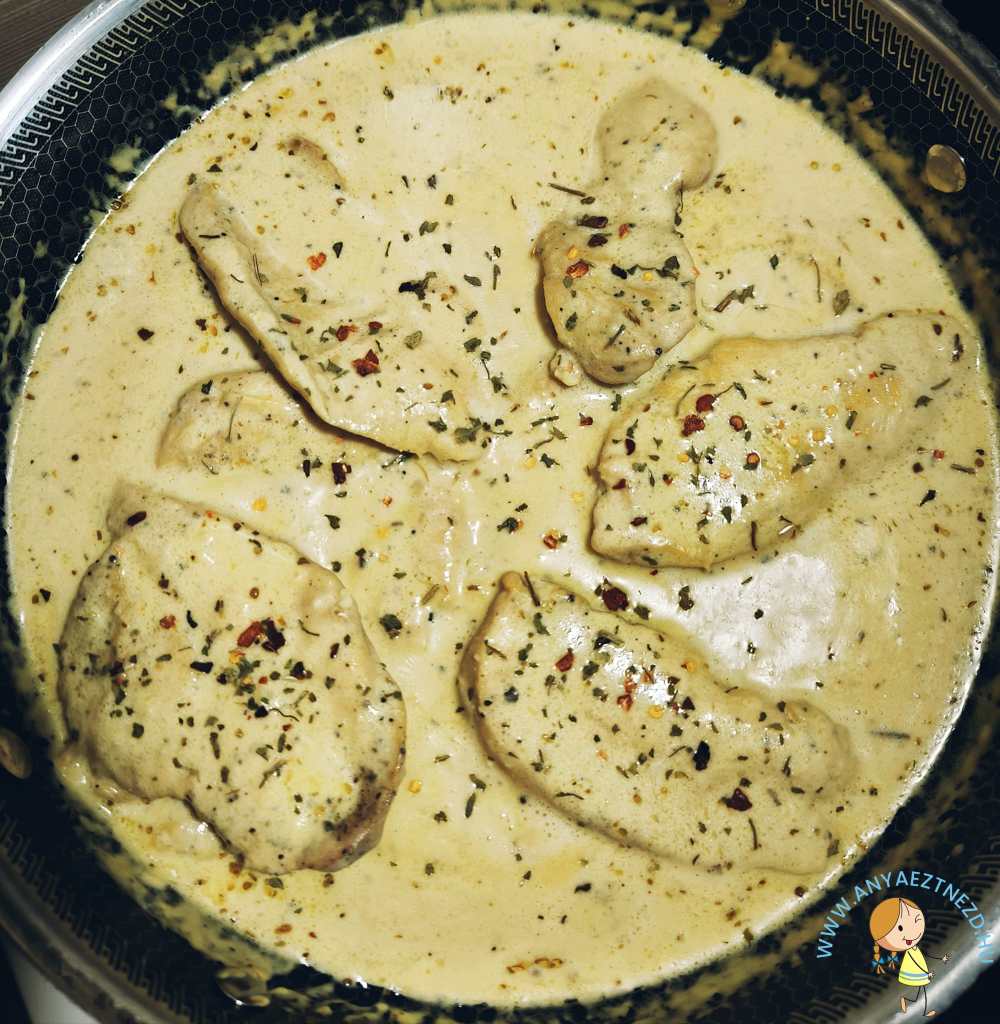 +1 tipp: Mint minden szószos étel, ez is frissen a legfinomabb, ha sokáig áll, akkor a szósz megdermed és már nem lesz olyan finom krémes, mint “újkorában”. Ha másnapra is marad belőle, akkor érdemes hozzáadni 1-2 evőkanál langyos vizet vagy néhány löttyintésnyi leves alaplevet, majd a tűzhelyen alaposan összeforgatni, hogy “felfrissítsük”. 🙂