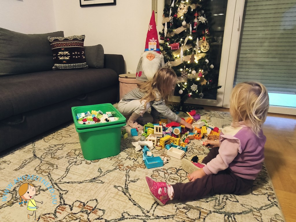 A karácsonyfa lába alatt ott a négyezer kiborított legókocka, mert éppen állatkertet építünk, az asztalon a két közösen összerakott, sötétben világítós kirakó és még a nyuszis társast sem pakoltunk el a szőnyegről, de így van ez jól.