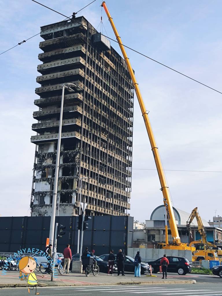 Márciusban ugyanis, a két hónapos kiválasztási folyamatot követően, a nyertes cég megkezdte a novemberben leégett Vjesnik épületének a bontását és mivel a mi oviba vezető útunk pont ott megy el közvetlenül a munkaterület mellett, így egészen közelről tudjuk napi kétszer szemmel kísérni a munkálatokat.