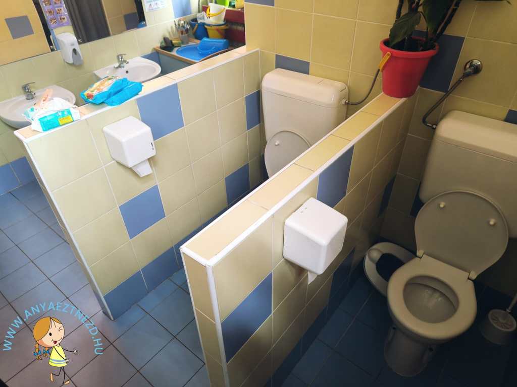 Az oviban egyébként biztonsági okokra hivatkozva építettek felnőtt mércével mindössze derékmagasságig érő falakat és emiatt nincsen ajtó sem, de biztos vagyok benne, hogy ha egy jövőbeni felújítás során lenne rá akarat, akkor lehetne ezt – a biztonsági előírások betartásával – jobban is csinálni.